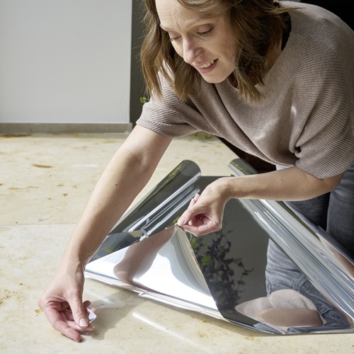 dc fix self-adhesive mirror effect privacy film is designed to provide one-way privacy to windows, wherever the light is greater. When fitted to the interior side of external glazing, you will be able to see out, but no one will see in during daylight hours. Note if it is dark outside and you have the lights on inside then you won’t have privacy.  This vinyl also offers a high level of heat protection (95%) but a low level of light transmission (5%). It will also block UV rays (99%) which can cause damage to furniture and soft furnishings.