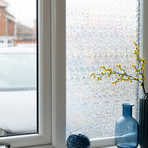 Dc fix static cling vinyl window film adds privacy, decoration and fun to over-looked windows, door panes and shower screens.  Peel and stick rainbow film creates stunning colours and patterns in the room while maintaining natural light.  The static cling technology means there is no adhesive and applied using water, it also offers UV protection (95%) to help prevent fading on your soft furnishings, glare protection for offices or bright windows, but still allows the light to shine through!