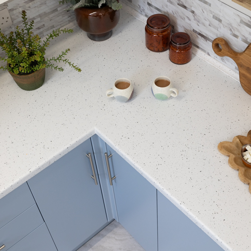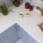• To ensure your surface is water tight, use silicone sealant around sinks and hobs for example