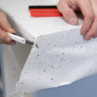 • The vinyl can be difficult to manoeuvre on surfaces like glass and appliances, lightly spray water first