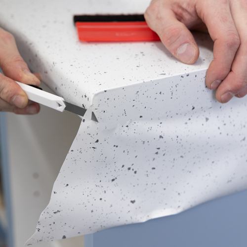 • Overlap the vinyl wrap film a few mm to allow for shrinkage when joining on a worktop for example